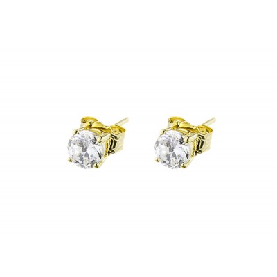 You can never go wrong with solitaire studs! The beauty of cubic zirconium's is that they are perfect everyday and travel jewelry. Leave the real at home and travel with this stress free pair! Round cut simulated diamonds are set in .925 sterling silver. Around .5 carats each. 18k gold plated. Looks great along side P20576G!