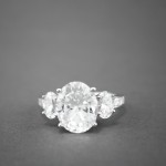 Dazzle in this awe inspiring cocktail ring! 3 oval simulated diamond are featured in the center that catch the light in a way that truly makes this ring glisten on your hand. 3 baugettes are placed on either side of the .925 sterling silver band. This ring is the ideal accessory to spice up your evening wear!