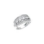 Minimal yet chic, this contemporary piece flatters the middle finger flawlessly! Round cut simulated diamonds decrease in size from the center as it tapers towards the hand. This .925 sterling silver setting is engraved with triangles giving this band a modern and fresh feel. Comfortable for everyday this ring is a must!