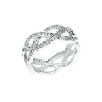 A braid desgin adorned with 68 round cut simulated diamonds compose this striking piece. This band looks fabulous as a thumb ring, or keep it traditional and wear it on your ring or middle finger. The simulated diamonds cover the top portion, leaving a .925 sterling silver band to curve around your hand for ultimate comfort. A beautiful ring to wear in the day or even at night! A necessity!